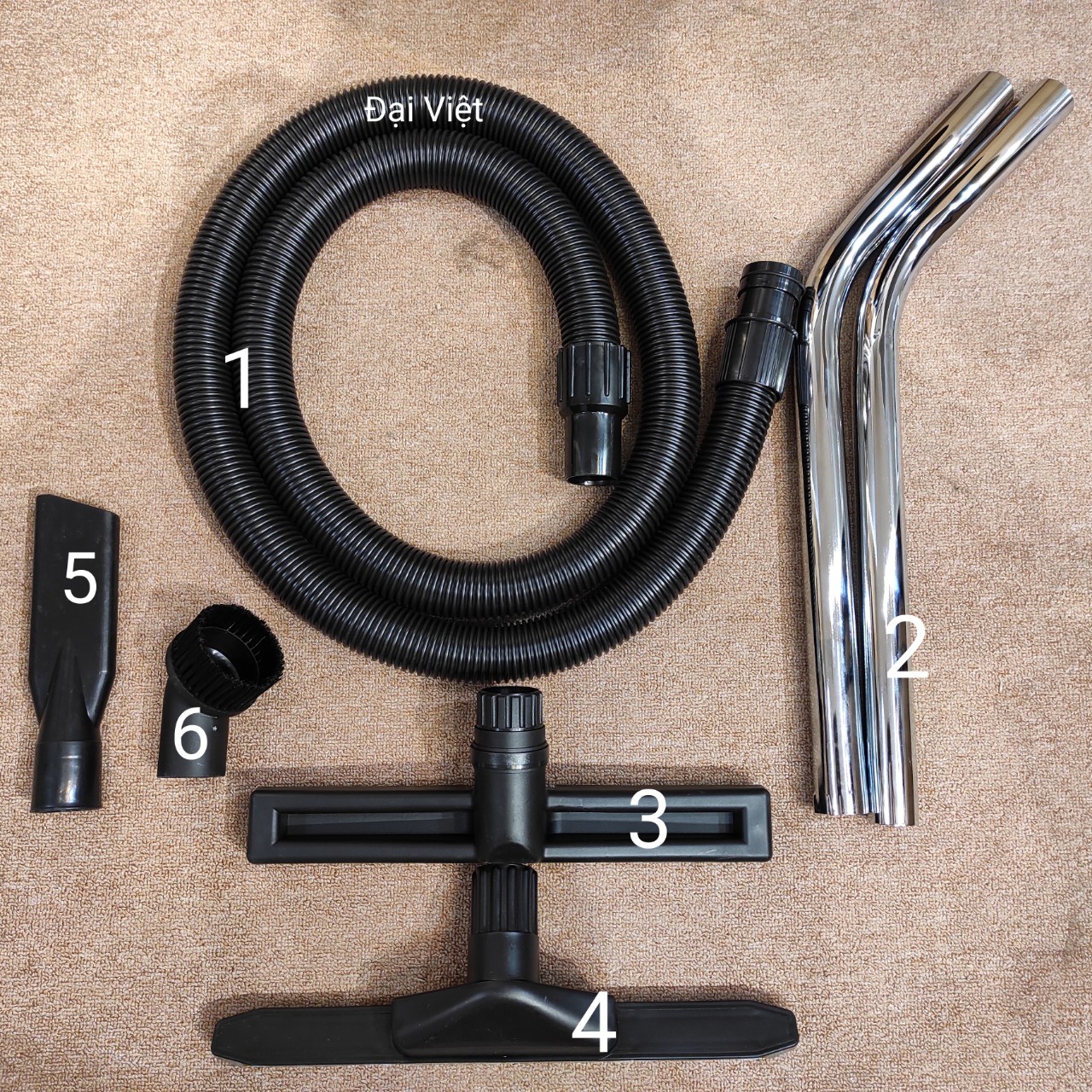 BỘ PHỤ KIỆN ĐẦY ĐỦ 6 MÓN CỦA MÁY HÚT BỤI CÔNG NGHIỆP: