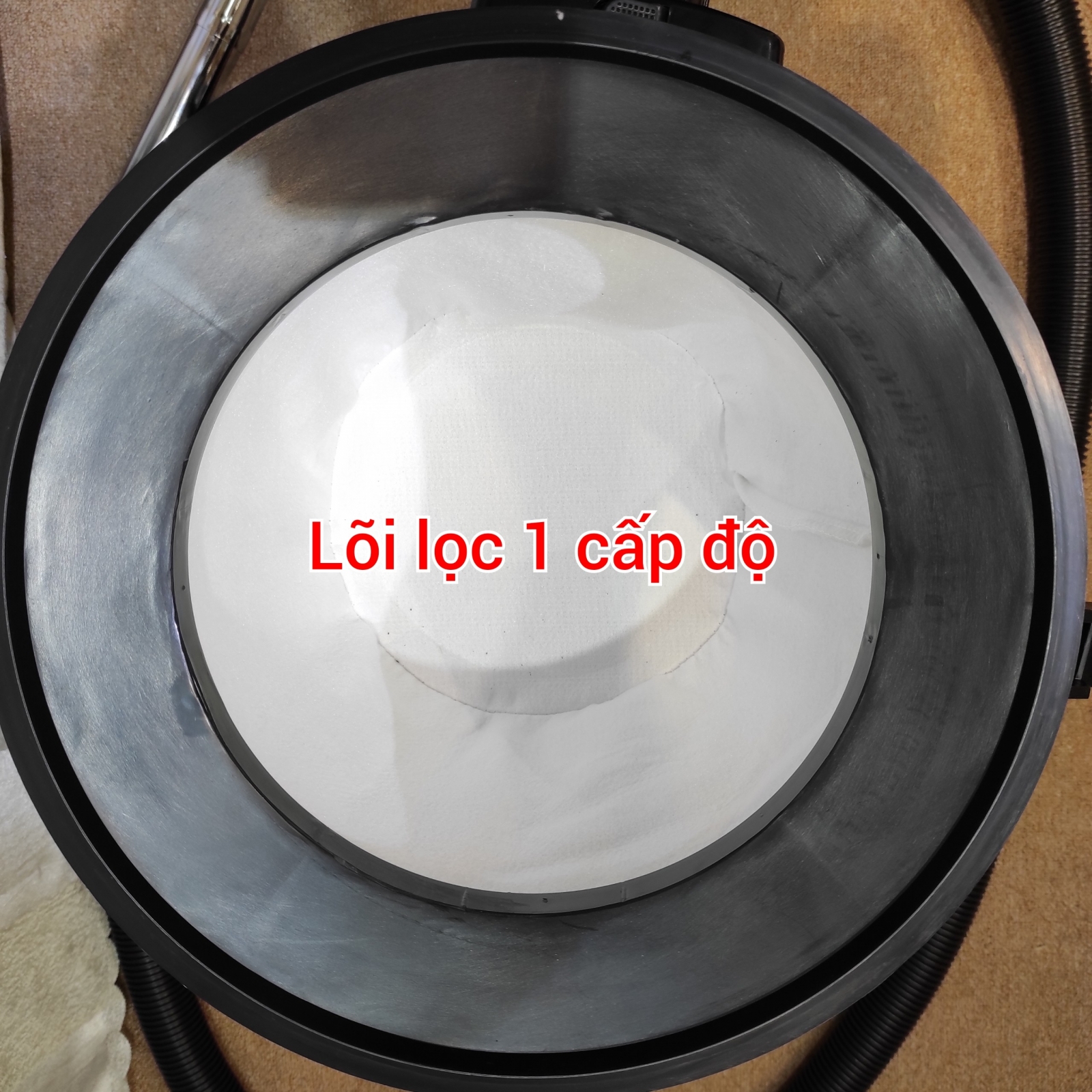 - 1 cấp: + 1 lõi lọc vải Polyester, lọc các loại bụi thô và mịn như: Đất, Cát, đá, sỏi, đinh, ốc, các loại bụi gỗ, bụi vải...