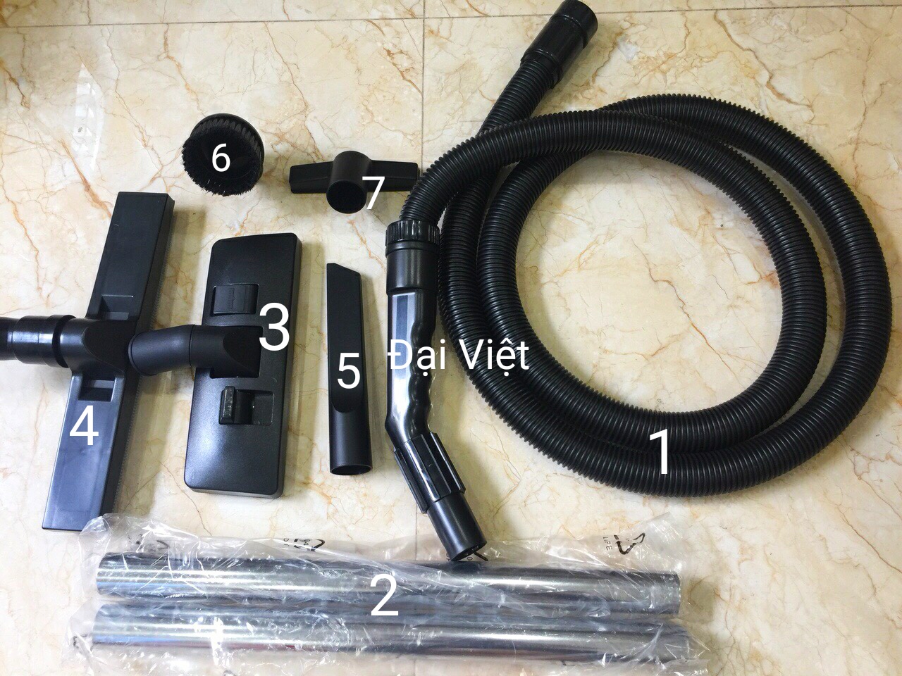 - Phụ tùng: bàn hút bụi, hút nước, đầu chổi tròn, đầu hút góc – hút khe rãnh.