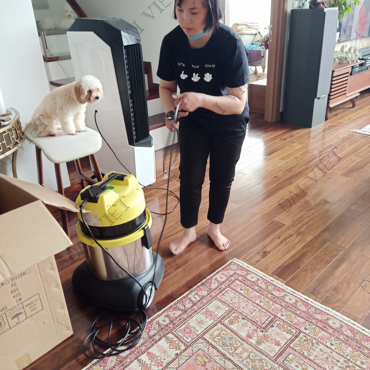 Anh Vũ- Mua máy hút bụi DV1-15JP 2 lõi lọc hút nhà đang xây dựng
